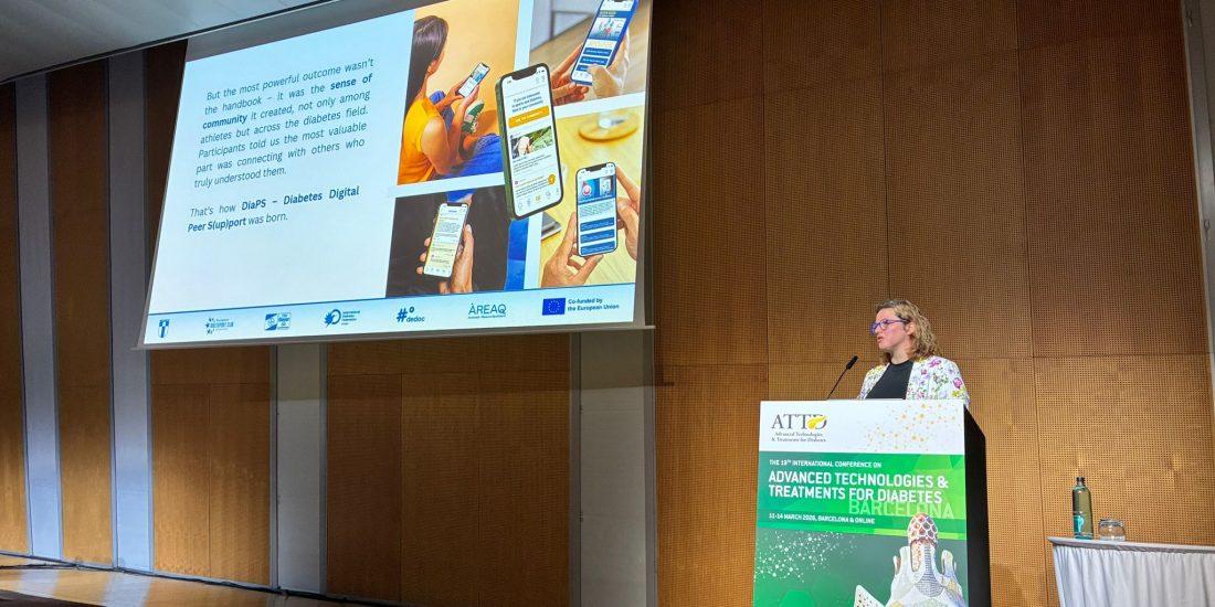 The DiaPS – Diabetes Digital Peer Support initiative was presented at one of the world’s leading conferences dedicated to diabetes and technology — ATTD (Advanced Technologies & Treatments for Diabetes), held in Barcelona from 11 to 14 March 2026. ATTD is a globally recognised scientific conference that brings together physicians, researchers, technology companies, and health professionals from over 80 countries. The event focuses on the latest advancements in diabetes care, including innovations in continuous glucose monitoring, digital health, artificial intelligence, and new treatment approaches. Presenting DiaPS to a Global Audience At the conference, Ines Jakopanec presented the DiaPS initiative, a digital solution designed